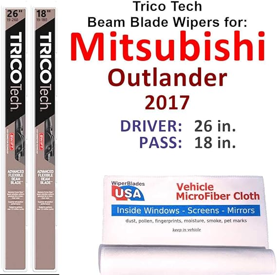 Amazon Com Beam Wiper Blades For 2017 Mitsubishi Outlander Set Trico Tech Beam Blades Wipers Set Bundled With Microfiber Interior Car Cloth Automotive